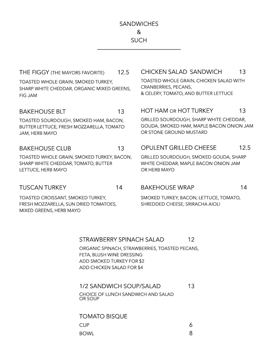 For lunch, don't miss the opportunity to indulge in the scrumptious Figgy Sandwich with smoked turkey, sharp white cheddar, and fig jam, or the classic Bakehouse BLT that features a tantalizing mix of smoked ham, bacon, and fresh mozzarella, all brought together with house-made herb mayo. As one customer remarked, the menu may be small, but it’s clear that The Bakehouse prioritizes quality over quantity.